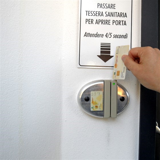 Accanto alla porta d'entrata c'è un lettore di Tessera Sanitaria (Carta regionale dei servizi) per verificare l'accesso solo alle persone maggiorenni. Nessun dato personale viene registrato, si verifica solo la maggiore età dei Clienti. Strisciando la tessera dall'alto verso il basso, la porta si apre dopo alcuni secondi di attesa.